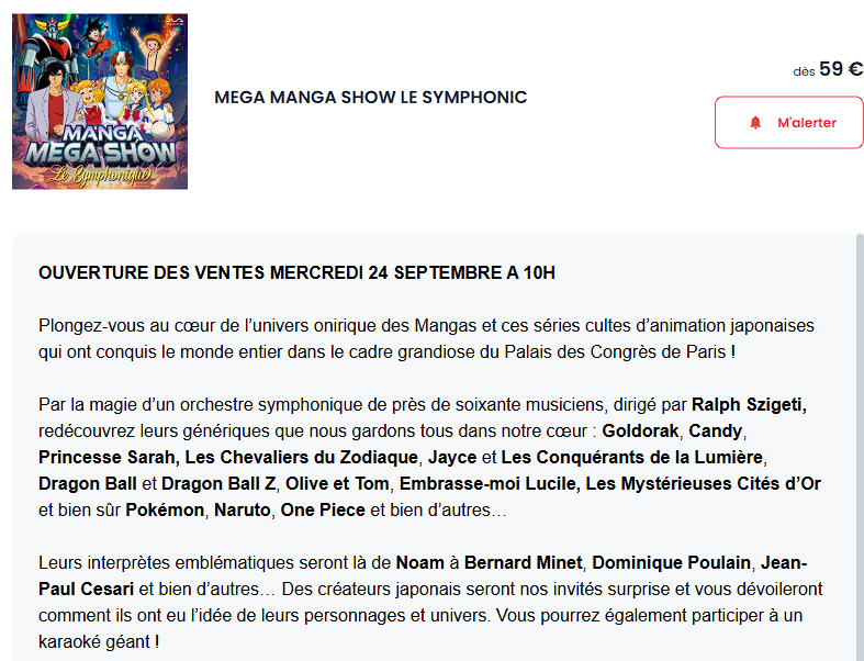 Ca vient de tomber. Un grand concert symphonique sur le thème des animés, dont les Mystérieuses Cités d'Or, va avoir lieu le 06/02/2026 à Paris, au Palais des Congrès !