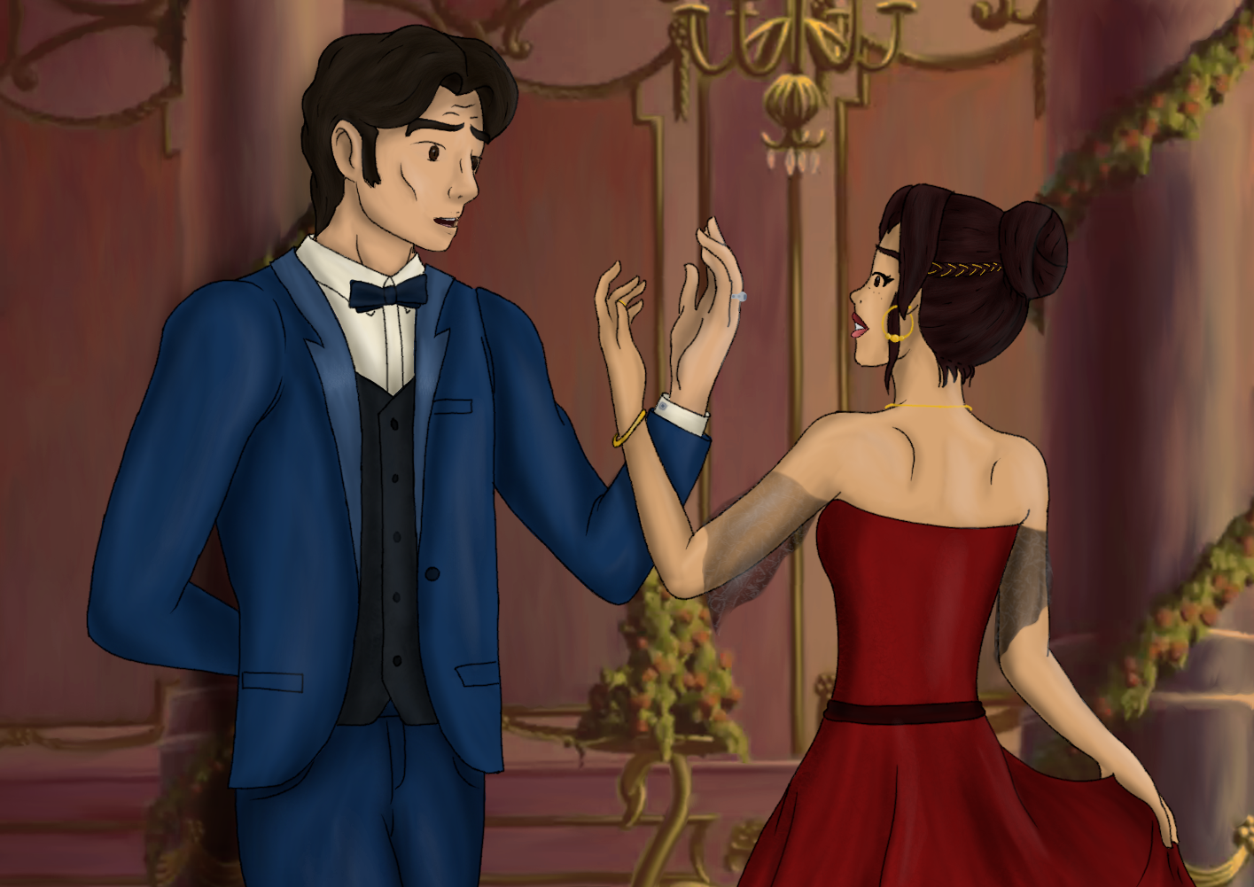Avant même qu'elle puisse dire quoi que ce soit, ce jeune homme lui tendit la main. Une danse ? Sérieusement ? Isabella soupira, elle n'avait pas le temps pour de telles futilités.