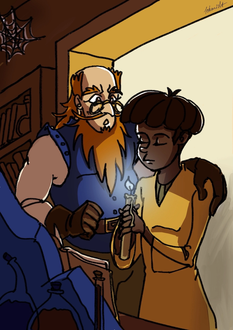 Ambrosius et Tao célèbrent Pâques sur le navire de l'alchimiste. Pendant que je dessinais, je me suis demandé : quel est le rapport d’Ambroisius à Pâques dans le contexte de son époque et de ses activités ?