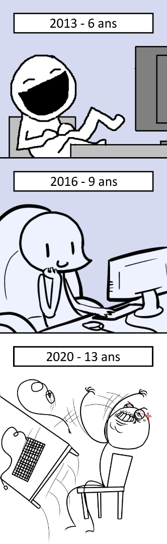 A présent, observons l'évolution de ses réactions au fil des années ...