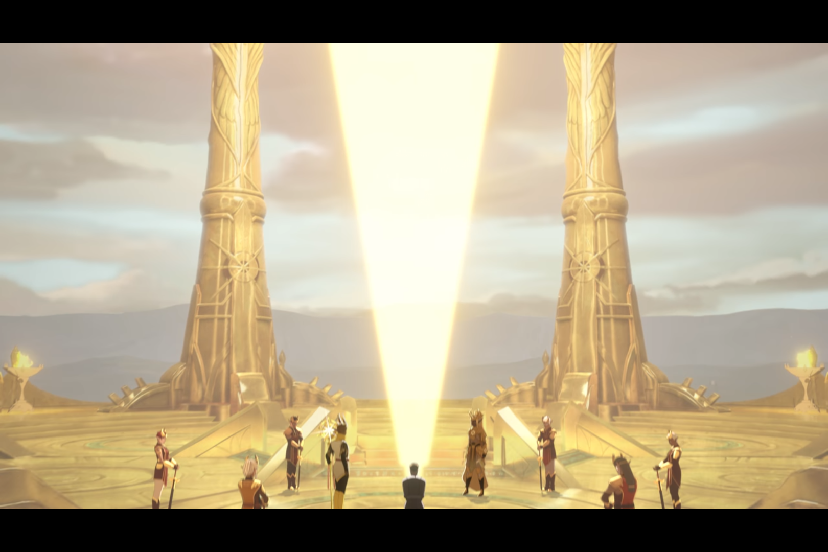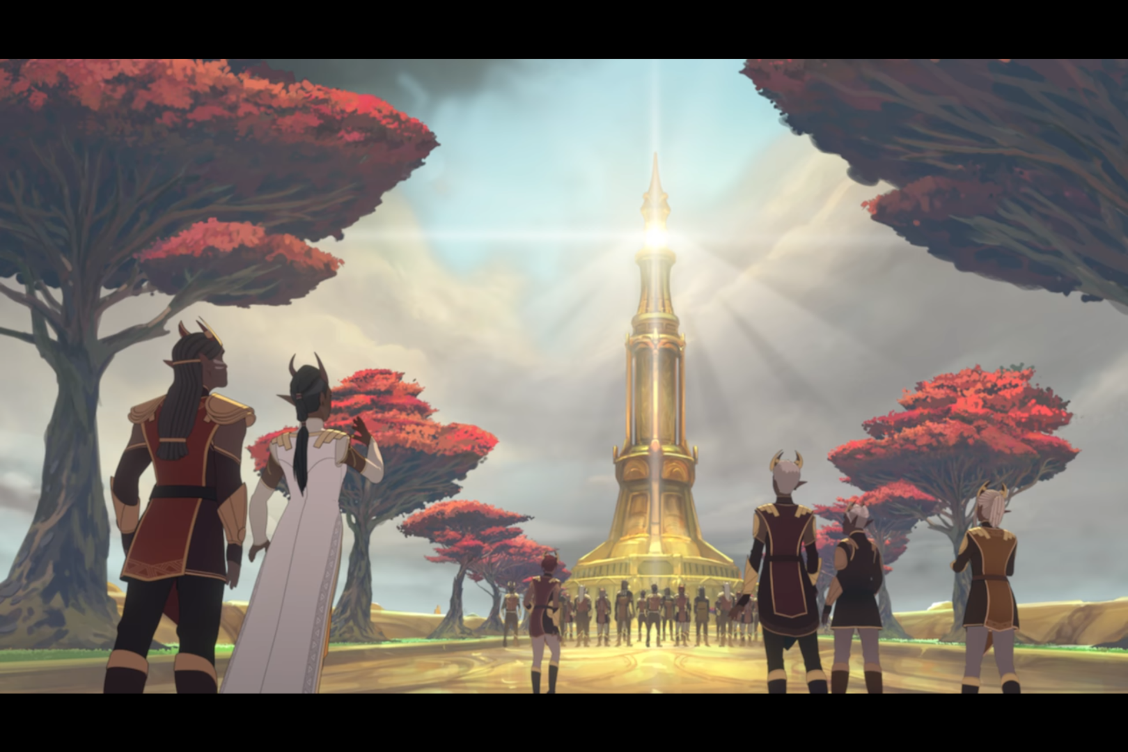 Voici des captures d'écran de l'animé Le Prince Dragon. C'est la cité des elfes du soleil, certes les décorateurs n'ont pas la contrainte de la rendre refermable, mais purée, ça en jette!