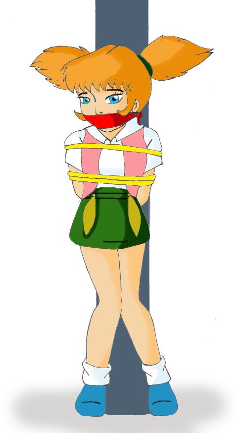 Aujourd'hui, notre Flora serait-elle trop bavarde? Visiblement, oui. Car l'auteur de ce fanart a jugé bon de l'attacher à un poteau comme font les indiens, avec un bâillon sur la bouche. Pas très sympa...