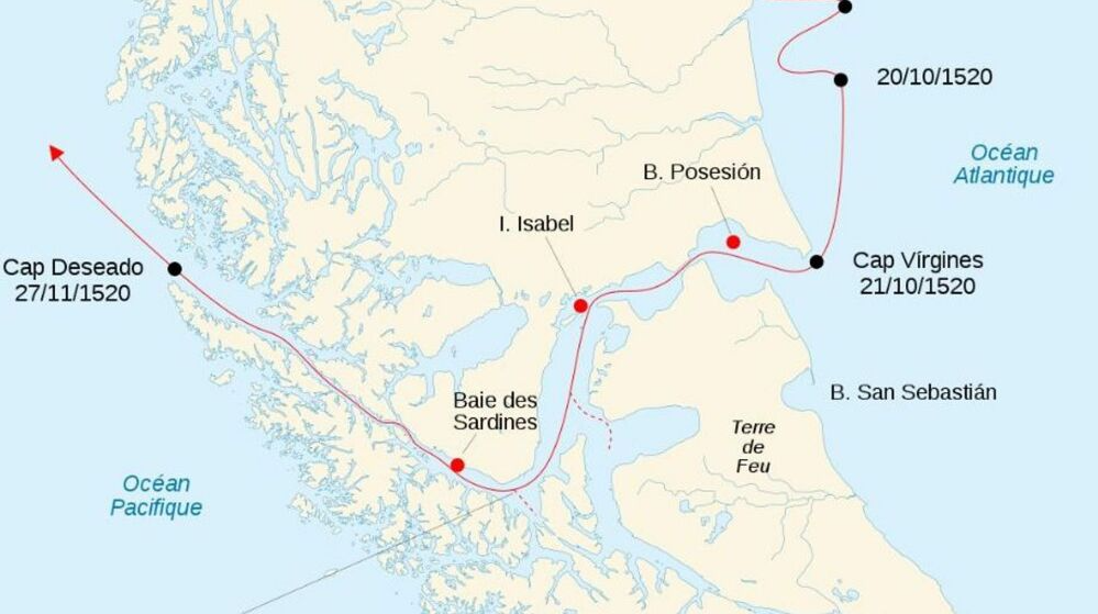 :Mendoza: : Quand un pilote navigue sur une zone inconnue, il se rattache à ce qu'il connait. Avant de partir à l'assaut de la mer du Sud, Magellan souhaitait revenir sous des latitudes plus clémentes. Nous avions donc tracé tout droit en allant le plus vite possible. Le littoral passait devant nos yeux à toute allure, et la vue changeait à chaque instant. Personne n'avait jamais bourlingué ici, pourtant, instinctivement, l'Amiral remonta le long de l'Amérique pour aller chercher des vents favorables, des vents portants qui pouvaient pousser la flotte à travers ce gigantesque océan. Les nefs filaient sur une mer calme que frisait pourtant un léger vent et qui, là-bas, vers la terre, blanchissait les rochers de ses vagues écumeuses. Au-dessus de nous, le ciel était bleu, d'un bleu ardent et pâle, les goëlands volaient très haut, décrivant en l’air de larges courbes d'un dessin délicieux, et les cormorans, tout noirs, rasant les flots, se hâtaient vers quelque retraite inconnue. La nuit commençait à se faire vers l'est, mais l'horizon opposé s'éclairait encore des derniers rayons du soleil qui affleuraient la ligne du ciel et de l'eau. De gros nuages, échevelés par le vent, des haillons de vapeur, qui traînaient dans la houle, passaient avec une vitesse d’ouragan. Petit à petit, l'astre du jour tombait d’aplomb sur l'océan où dansaient mille lumières aveuglantes. Il était alors sept heures et demie du soir. À la surface de cette mer, écrasée sous le poids des nuages, la nuit allait tomber lourdement, presque sans crépuscule, comme si le soleil se fût subitement éteint. On ne le sentait déjà plus du côté où il déclinait et c'était à se demander comment les lames, en déferlant, se couronnaient encore d'une crête lumineuse. Le vent, soufflant du sud-ouest et ne rencontrant aucun obstacle sur cette immensité découverte, battait en côte avec une prodigieuse violence. Tout navire qui, cette nuit-là, aurait tenté d'accoster, eût certainement risqué de se perdre corps et biens. Bientôt, l'Amérique n’apparaissait que comme un trait sinueux d’ombre violette, barré par une rangée de grands pics glacés à peine visible et plus loin, par un arbre isolé, si effacé et si flou, qu’on aurait pu le prendre pour de la fumée s’élevant d’un toit. Durant les trois semaines suivantes, la flotte essuya de grandes tempêtes en remontant le long de la côte. Le 16 décembre 1520, alors qu'elle se trouvait par trente-six degrés sud et naviguait au nord-nord-ouest, elle perdit définitivement le continent de vue. Les navires se trouvaient alors à peu près à la latitude du Río de Solís, que nous avions exploré en janvier 1520, soit presque un an auparavant.