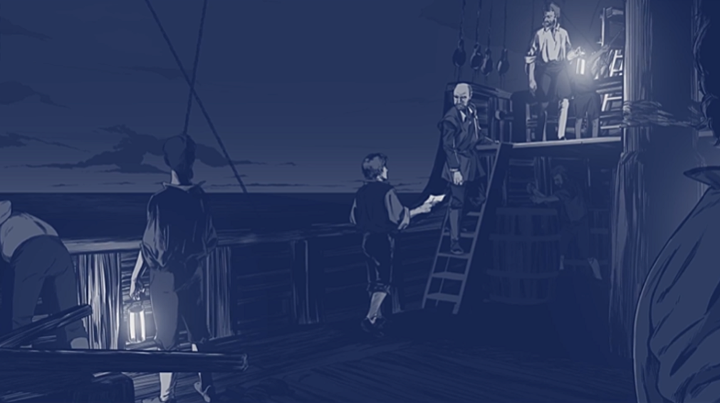:Mendoza: : C'est peu dire! Penaud, je fixai le ciel, comme captivé par le vol d'un oiseau, évitant soigneusement son regard sévère braqué sur moi. Le jour déclinait dans un dégradé d'orange, de rose et d'écarlate. Le vent s'était levé et l'air commençait à fraîchir encore plus qu'il ne l'était déjà. Je tentai malgré tout de me justifier mais de moi, l'officier supérieur ne voulait rien entendre. Pas d'explication, pas d'excuse. Hors de lui, il me saisit par le col et me secoua comme un prunier, me sommant de me taire. C'est alors que le jeune marin intervint.