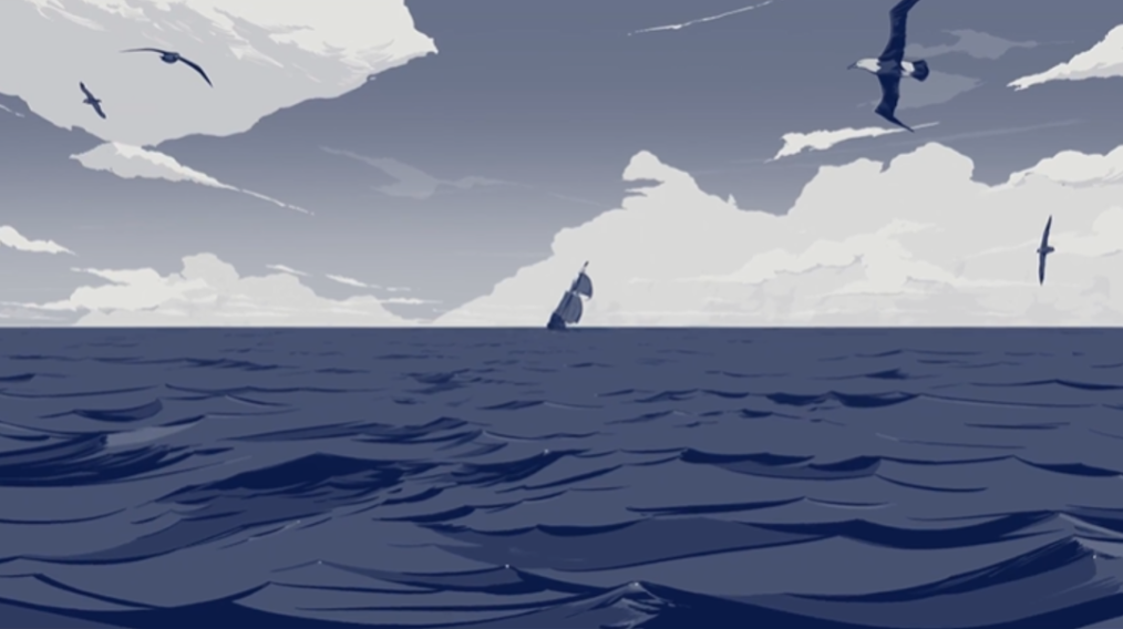 :Mendoza: : Le mauvais temps cessa le 18 de ce même mois, laissant place à un soleil radieux. Magellan découvrit alors un océan calme, ce qui l'inspira. En raison de la tranquillité de ses eaux, à peine ridées par une douce brise, il le trouva tellement clément qu'il le baptisa aussitôt Pacifique. Ce nom lui restera. Il fallut encore attendre quatre jours supplémentaires pour que la flotte oblique réellement et définitivement vers l'ouest. Mon mentor souhaitait s’assurer une marge de manœuvre pour éviter de retomber sous le quarantième parallèle. Le 22 décembre donc, les trois nefs se lancèrent dans le vide du grand large... Je ne vais pas te relater en détail la traversée du Pacifique qui dura plus de trois mois, cependant, il y a deux ou trois événements qui m'ont marqué. Ils méritent donc que je m'y attarde.