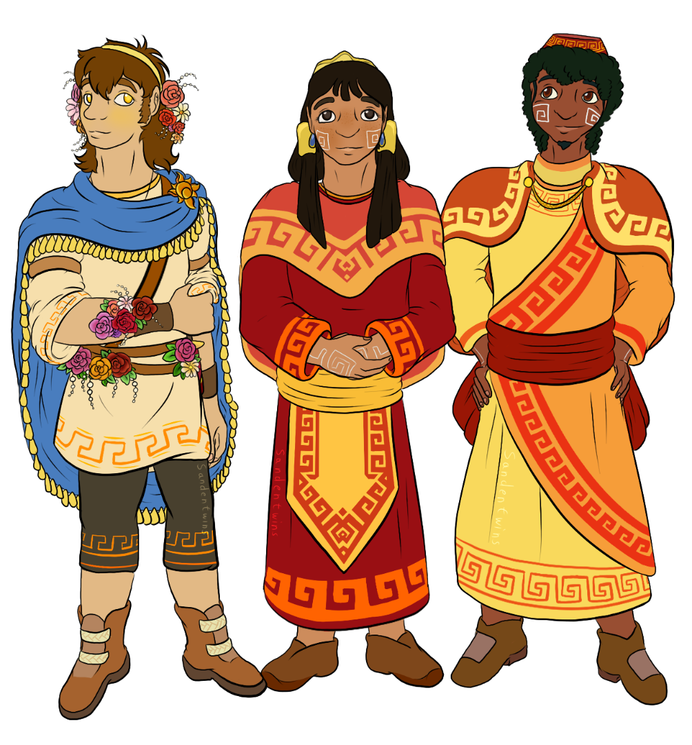 Les dessins sont sympas, Esteban est très mignon ( trop?), mais je trouve que tu accentues trop la différence entre muens et atlante, du coup Esteban fait un peu pièce rapportée ( pardon), je verrais plus un équilibre entre les trois ( oui je chipote, Zia a une robe orange et Tao une tunique jaune à l'origine donc leurs costumes sont de toute façon semblables de base!)