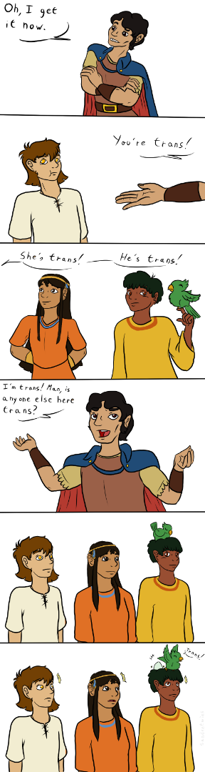 Je sais pas lequel d'entre tous feels le plus trans, donc je me suit dit: pourquoi pas tout le monde? Et comme je tiens la vérité absolue et incontestable entre mes mains, j'en ai décidé ainsi. /blague