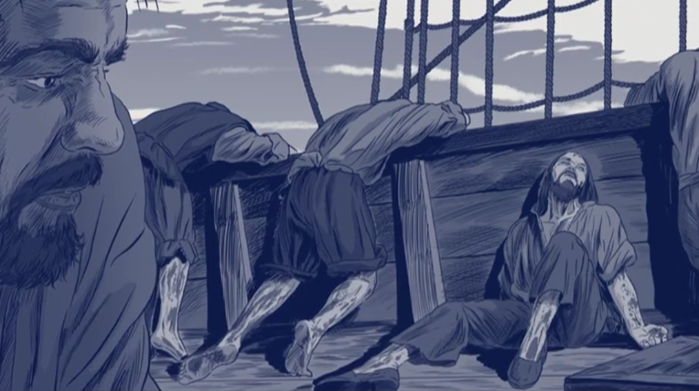 "Un rat s'achetait un demi-écu car on ne pouvait en trouver assez pour tout le monde. Nous buvions une eau jaune et infecte. Nous étions touché par un mal pire encore. Les gencives de la plus grande partie de nos hommes, enflaient en haut comme en bas. Elles enflaient à tel point qu'ils ne pouvaient plus se nourrir et ainsi, ils mouraient de faim".