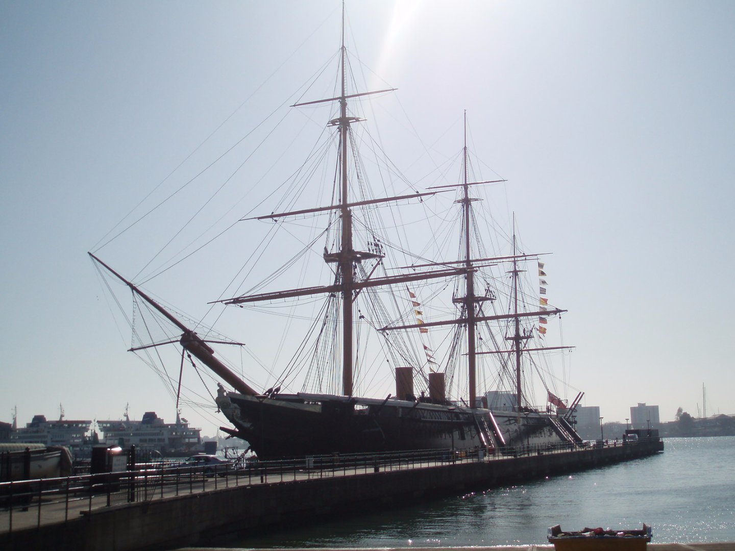 En revanche, j'ai retrouvé quelques clichés "potables" du HMS Warrior, également amarré à Portsmouth, non loin du Victory ... Je vous prie de m'excuser par avance pour la qualité des images, mon appareil photo de l'époque était loin d'être au niveau ...