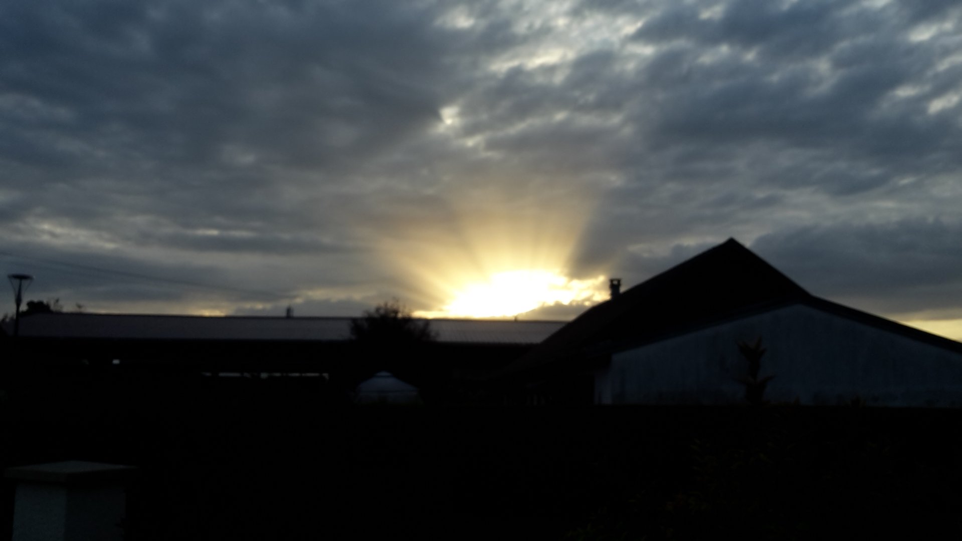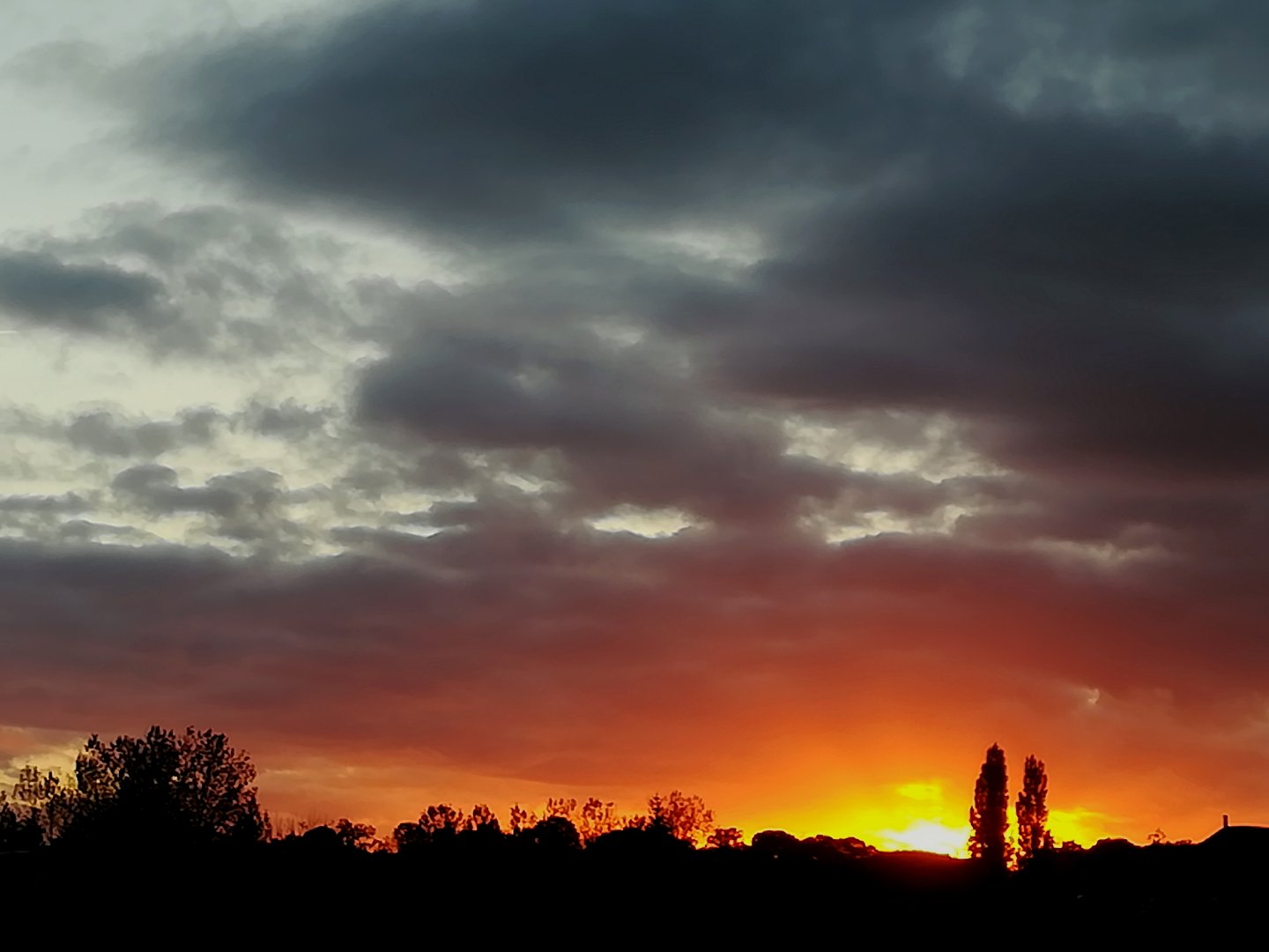 Wow, c'est supra beautiful ! Ce dégradé de jaune/orange/rouge au-dessus des arbres et des habitations est juste magnifique.