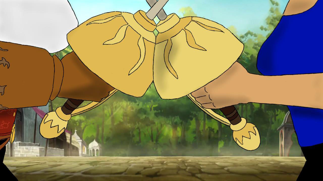 La maghrébine lui fit lâcher l’épée, planta la sienne au sol, prit le bras d’Isabella et la fit basculer au dessus ses épaules, Isabella tomba cul par-dessus tête. Mareina tendit une main amicale à sa sœur. Cette dernière la saisit, ravie d’avoir eu un si bel entraînement.