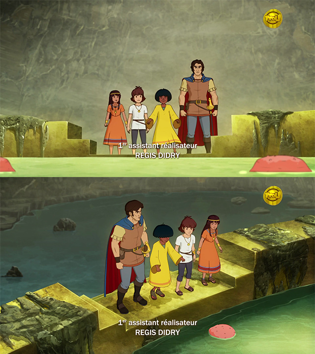 La moisissure sur la pierre, de part et d'autre des personnages, qui change d'aspect ? Bof...