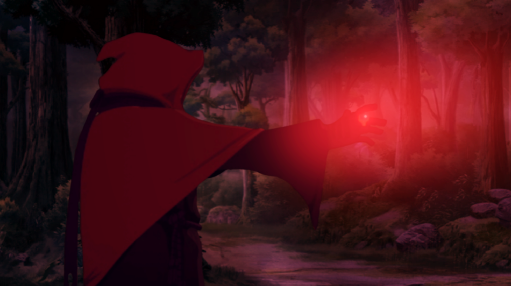 Même sans voir son visage, Zarès paraissait exulter, tandis qu'il s'abandonnait au mana*. Il puisa dans les réserves du gantelet. Jaillissant de son bras tendu, une sphère d'énergie pure éclaboussa la forêt d'une noirceur ourlée de pourpre et d'orange, fusant directement sur Théophraste.
