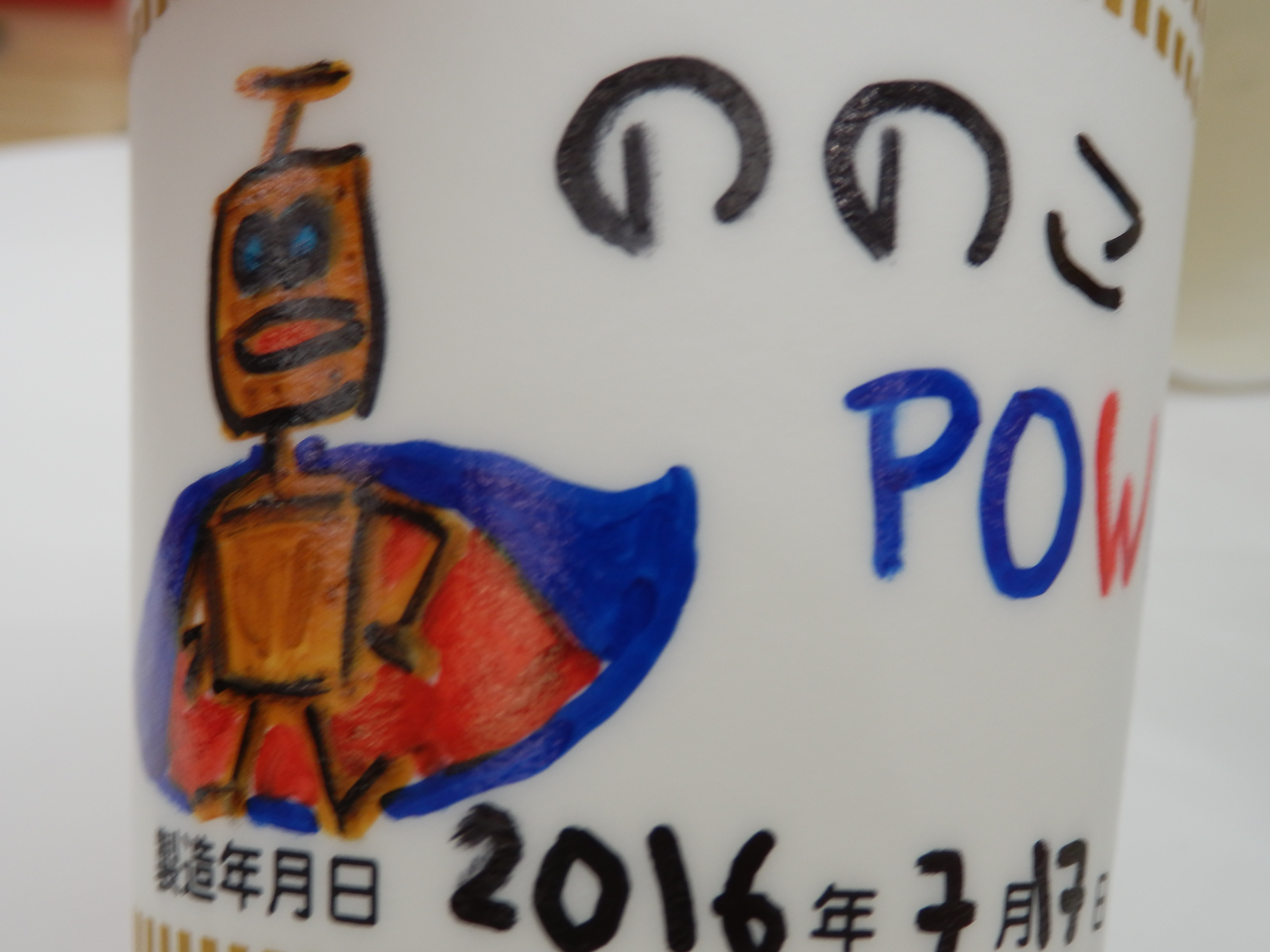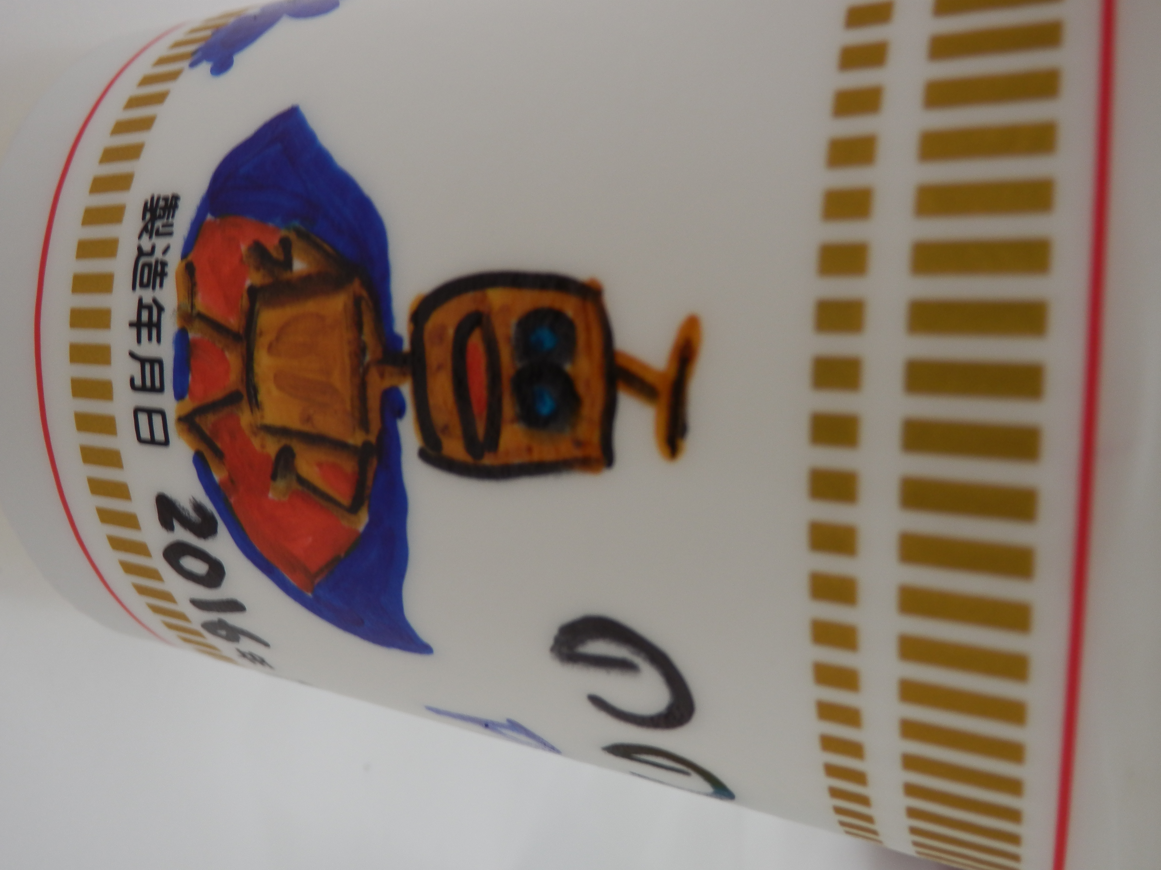 Cet été je me suis décoré un petit bol de nouilles instantanées au musée des 'instant ramen' (doza) situé dans la banlieue d'Osaka, et voilà ce que ça donne (à l'envers bien sûr!)