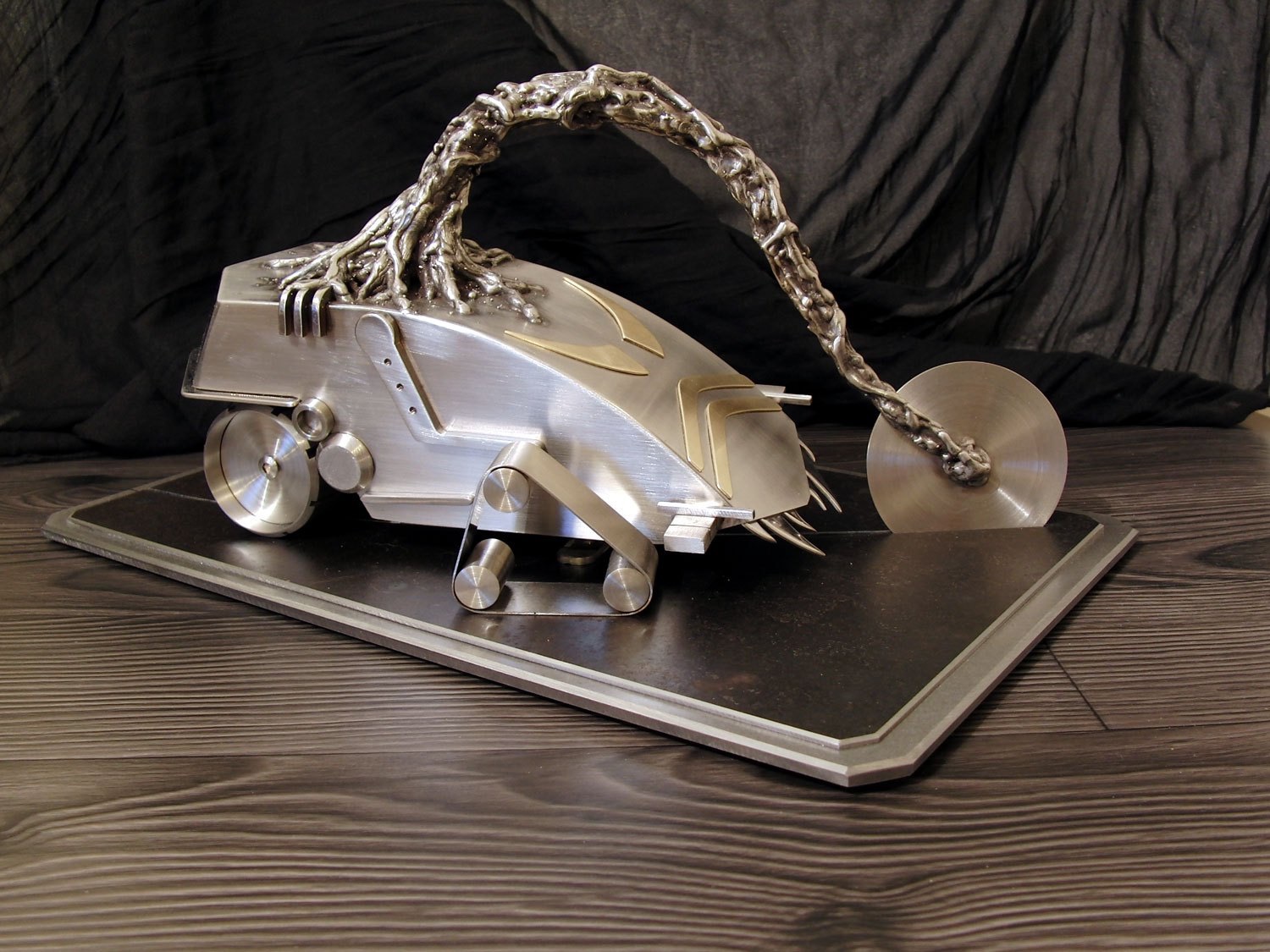 Pour la reprise, je vous propose cette réalisation en métal par un fan de notre ami Diskor, sous sa forme de plaisanterie à quatre roues...de mauvaise herbe à quatre roues, pardon! *lol*