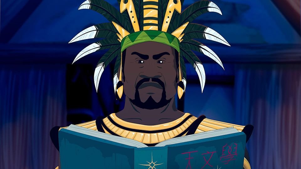 En effet le gars que leur a indiqué le vieux est portugais. Ce personnage doit être un chef ou un roi qu'ils rencontreront (d'ailleurs les inscriptions sur le livre me font penser qu'il contient peut être des renseignements sur une cité)