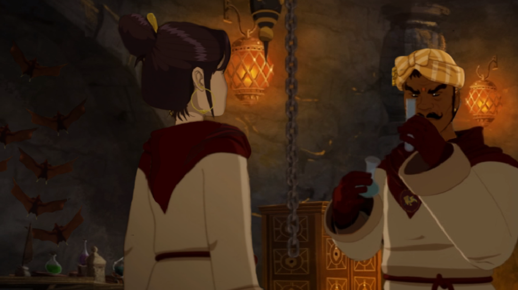 De retour du scriptorium, un nouvel alchimiste venait de pénétrer dans le laboratoire et Hieronymus s'empressa auprès de lui car il s'agissait d'Aloysius. On échangea saluts et politessses de toutes sortes mais Athanaos tenait bien caché sous sa tunique la manuscrit de Kardalipura... Lorsque l'Hindou s'éloigna, l'ancien disciple de maître Léonard souffla à son fils: