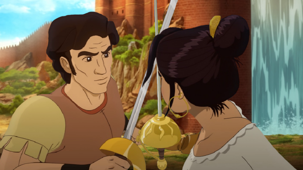 Avant qu'elle ne puisse atteindre le milieu du chemin, Mendoza apparut de derrière un arbre, lame au clair, faisant sursauter l'inconnu qui s'apprêta à dégainer son épée. Avec un petit rire nerveux, ce dernier lâcha: