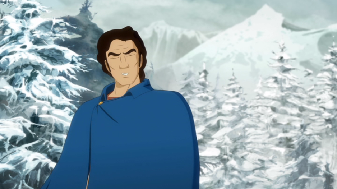Et la cape là où il faut bien comme il faut. Elle laisse voir toutefois qu'il s'est rasé tout partout...
