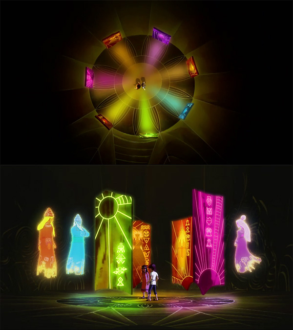 Je commence par la fin (et ouais !) et l'épisode 24 dans la Cité d'Or en compagnie des Sages. En vue du dessus puis un peu plus tard de côté. Vous ne remarquez rien ? Les Sages ont joué aux chaises musicales (depuis le temps qu'ils s'ennuient !) et ont permuté leurs positions :lol: