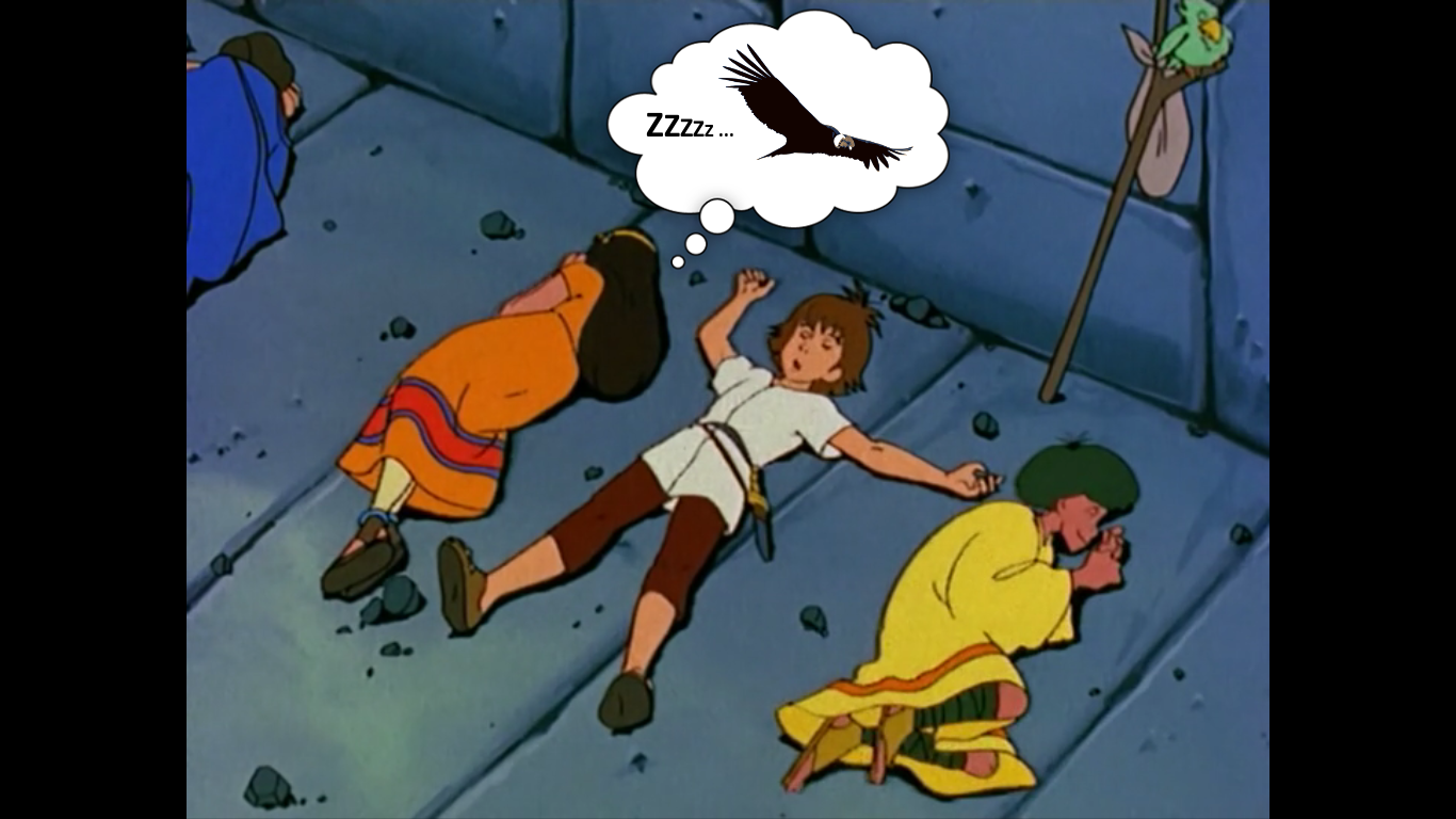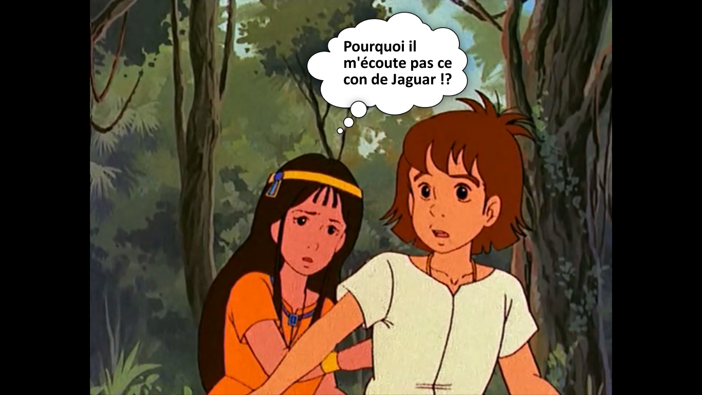 Dans la série originelle, notre petite inca communique plusieurs fois avec son condor et on la voit même faire des signes aux iguanes et aux goélands des Galápagos ... Bon, y a rien de bien choquant là-dedans.