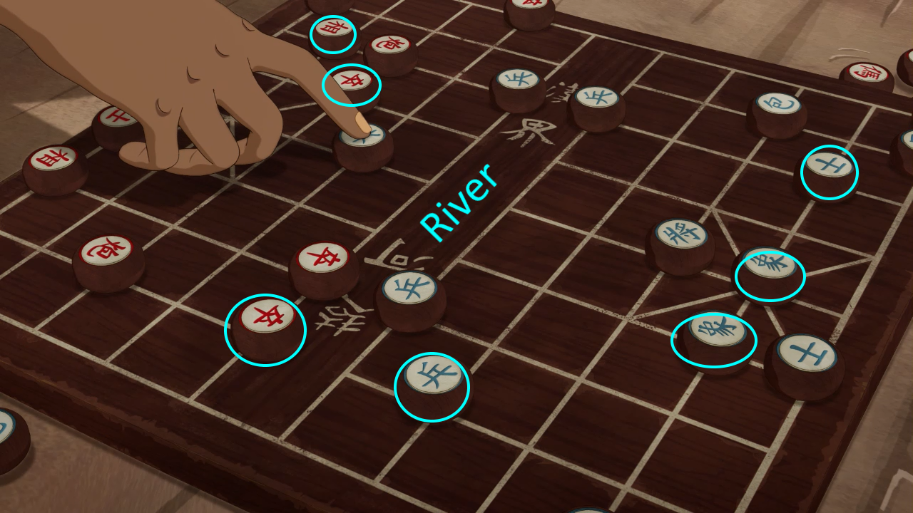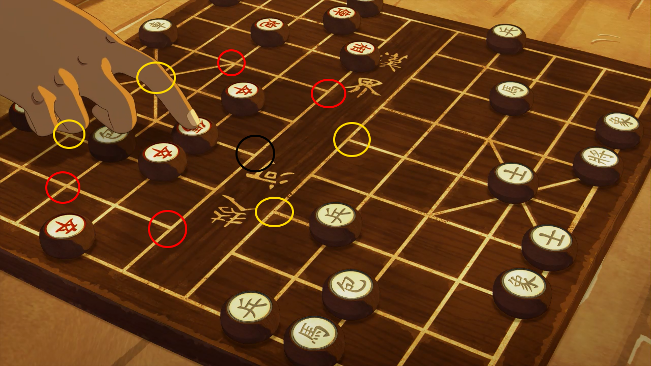 In episode 13, there are scenes that Prince Zhu played Chinese Chess (also called XiangQi 象棋) with other villians. However, there are two wrong points according to the game rules of Chinese Chess. Although there are variation in game rules, the game rules used in Ming Dynasty (16th century) should be the same as the modern rules.