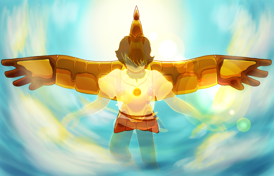 L'arrière de sa tête le gratte. C'est comme si quelqu'un touchait un point précis de son cerveau. Et soudain il tressaillit, et bouge, et ses doigts s'étirent et sa bouche se ferme et sa tête se lève et la chaleur dans son dos se rassemble et s'accumule et soudain elle explose et c'est alors qu'il bouge, qu'il devient plus léger que l'air, que– qu'il s'envole, qu'il vole!! Il est plus léger que la lumière, la lumière dont il est fait, la lumière qui l'anime, et ce sentiment familier lui revient alors pour le rassurer–et c'est là qu'il comprend, mais son esprit lui dit que ce n'est pas ça, que ce n'est pas tant où il est que qui il est. Il connaît ce sentiment, mais c'est bien plus fort que ce dont il se souvient, et c'est alors que ses sens se réveillent et qu'il sait où il se trouve et ce qu'il fait, et pour la première fois depuis son réveil, il sait ce qui se passe.