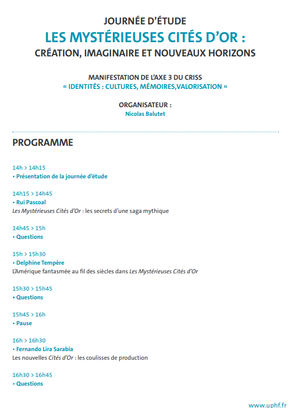 L'Université polytechnique des Hauts-de-France, à Valenciennes, organise le 27 Novembre une journée d'étude "Les mystérieuses Cités d'Or : création, imaginaire et nouveaux horizons". :D