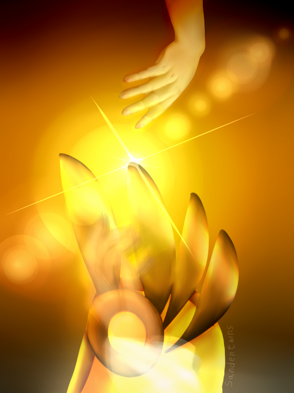 C'était comme si toute l'énergie qu'il avait accumulée en lui se libérait d'un coup. Il sentait chaque pore, chaque fissure de l'orichalque se remplir de lumière, jusqu'à la plus petite particule s'imbiber d'énergie et de potentiel. La douleur qu'il sentait dans ses plumes se faisait repousser, balayer par cette force qui s'étendait et bondissait dans son corps, une force qu'il avait du mal à contenir.