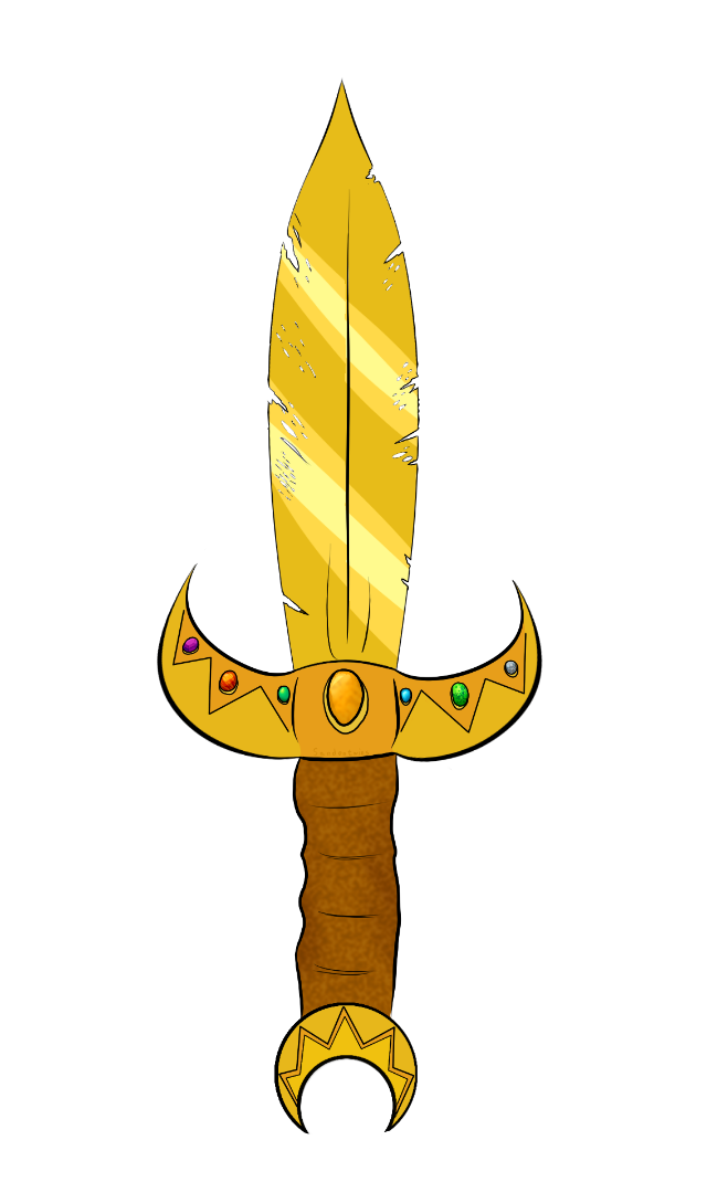 Le soleil reparut de derrière les nuages où il s'était caché, et la dague d'Esteban brilla sous ses feux. Les gemmes de la garde envoyèrent leurs reflets colorés sur le sable, et il s'amusa un moment à les faire bouger, regardant danser l'arc-en-ciel de leurs couleurs.