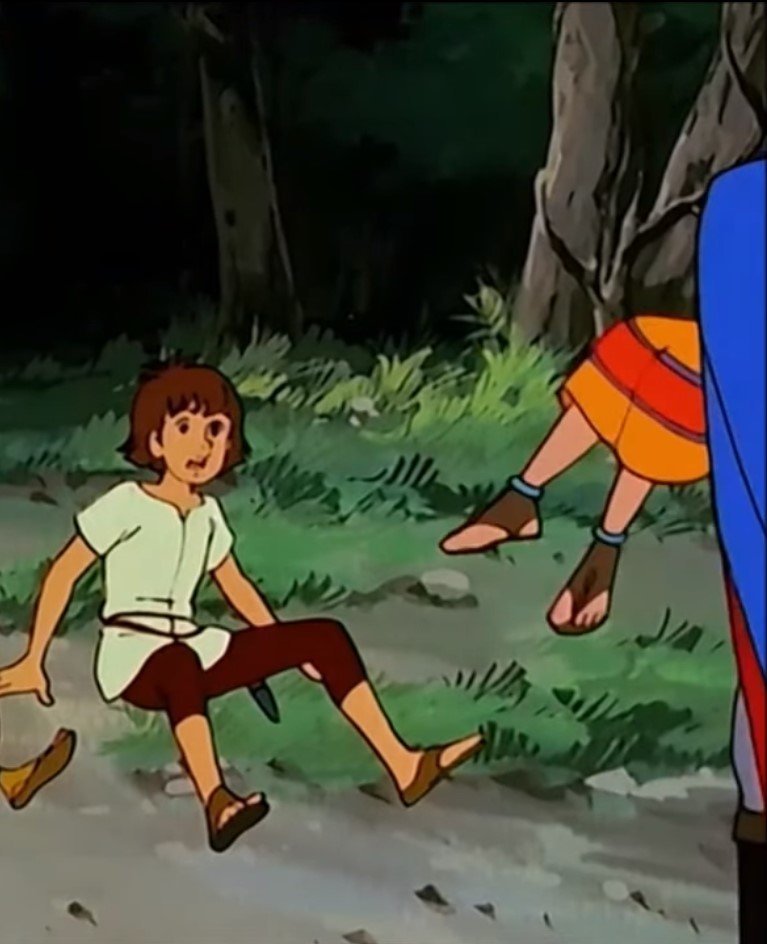 Esteban disant "mon zia" après que Mendonça ait ramené le jeune Inca sain et sauf de la rivière, près de la forêt de statues de terre (Vous voulez une meilleure preuve que celle-ci ?)