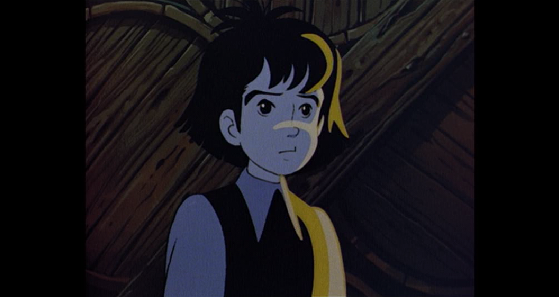 : Et puis, je dois m'absenter. J'ai donné rendez-vous à quelqu'un sur le port. Un garçon ayant à peu près ton âge et possédant le même médaillon que toi. Il viendra te rejoindre un peu plus tard... s'il se montre. Allez! Assez posé de questions. Hop!