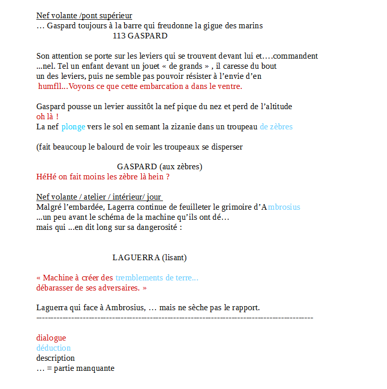 Je me suis souvenue de la petite vidéo Facebook qu'avait fait Pierre-Alain de Garrigues (doubleur d'Ambro/Zarès) lorsqu'ils étaient encore à l'étape du doublage l'année dernière. Dedans, on pouvait voir une partie du script, alors j'ai réécrit ce que l'on pouvait voir dessus malgré la qualité de la vidéo et ça donne ça :