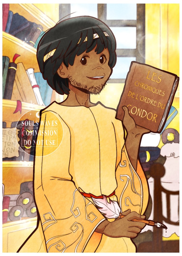 L’homme semble encore bien jeune, mais ses yeux trahissent une sagesse acquise au bout de plusieurs siècles d’existence… Ils brillent toutefois de malice et l’érudit ne peut que sourire quand lui reviennent en tête des souvenirs des nombreuses aventures passées... Mais il retourne finalement à son ouvrage et s’attelle à l’écriture. D’abord lentement, il s’emballe ensuite, les mots s’enchaînant à toute vitesse dans son esprit… A tel point qu’il doit parfois se forcer à ralentir pour ne pas que son récit risque de devenir illisible ou incompréhensible… Il ne voit plus le temps passer et rien, dans ce monde, ne l'en avertirait. Après un long moment d’intense labeur il s’arrête, relit le tout, puis satisfait, referme l’ouvrage.