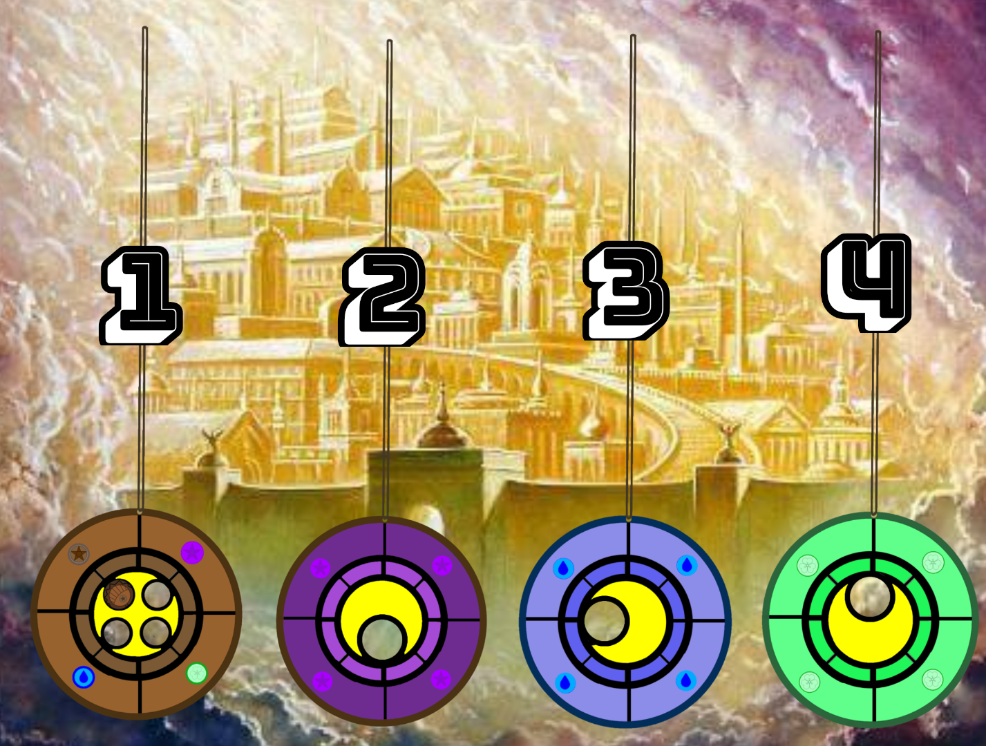 ?? "Récemment, un homme est venu à Séville pour prévenir les autorités de son étrange découverte. Il annonça qu'il avait trouvé un collier avec une forme ronde ayant 4 symboles : une marron avec une étoile entouré (1), une autre violette avec une étrange étoile (2), une autre bleue avec une goute d'eau (3) et la dernière verte avec une espèce de fleur (4) et 3 petits ronds au milieu. Évidemment personne ne l'a cru et à été envoyé en prison".