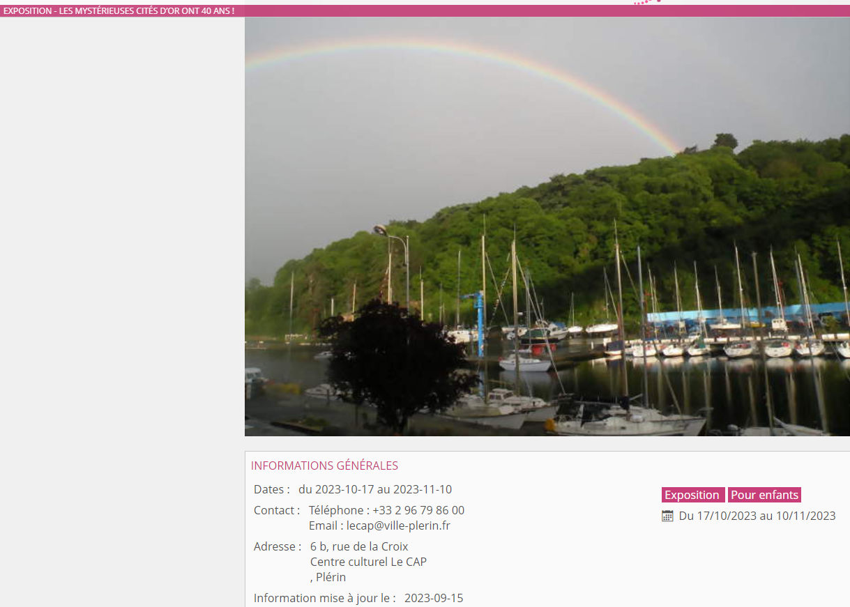 Re: Exposition "LES MYSTÉRIEUSES CITÉS D’OR ONT 40 ANS !" à Plérin