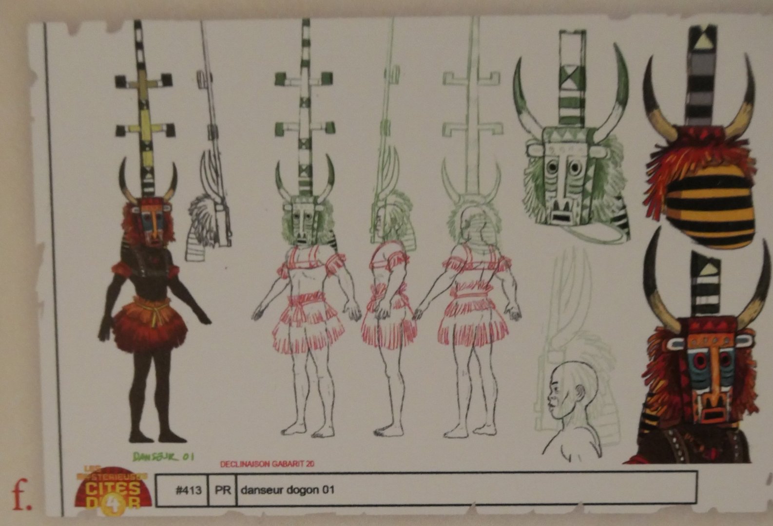 Les affiches des lieux visités en Asie et en Afrique montrent bien la richesse de la documentation rassemblée : photos, inspirations, dessins préparatoires, accompagnés des explications sur les légendes des affiches.