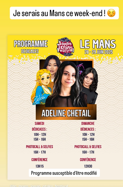 Adeline Chetail sera au Mans ce week end pour le Japan Otaku Festival