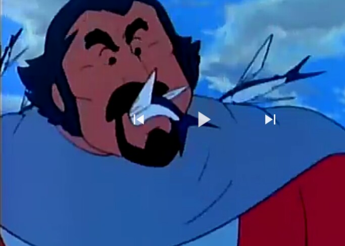 Les soldats japonais poursuivent Mendosa et ses amis. L'un d'eux tire une flèche et blesse Pedro. Mendosa prend le blessé et saute dans un buisson. Là, on a encore droit à une scène de gag. Pedro y surjoue le blessé. C'est du vu et du revu, enfin bon... Mais surtout, on se demande pourquoi les soldats japonais ne les rattrapent pas. Encore, si les personnages s'étaient cachés correctement, dans une faille ou quoi, mais là, ils sont vraiment trouvables facilement dans un simple buisson... En plus, comme quelqu'un l'a dit avant moi sur ce topic, Pedro est blessé au bras, ce qui devrait nullement ralentir le groupe, contrairement à ce que dit Mendosa. Sur ce, Ambrosius se sacrifie pour faire diversion, ce qu'accepte Mendosa. C'est bizarre, car, encore une fois, pourquoi Pedro a risqué sa vie pour l'emmener dans sa fuite, surtout si c'est pour se séparer aussi facilement. C'est encore une logique bizarre...