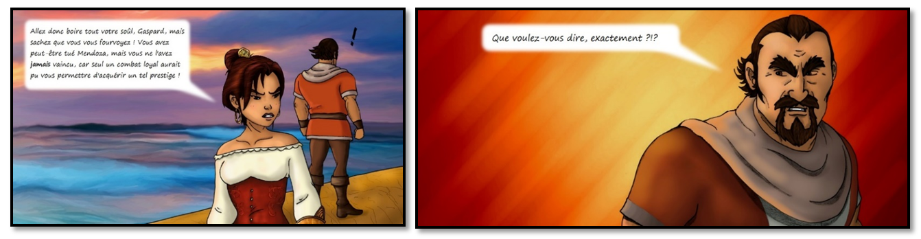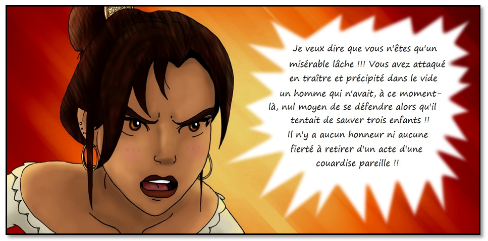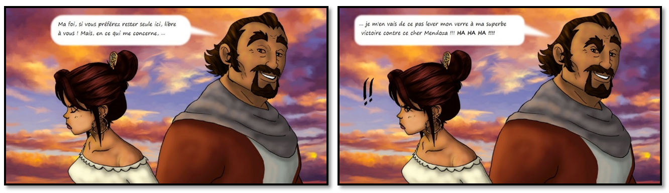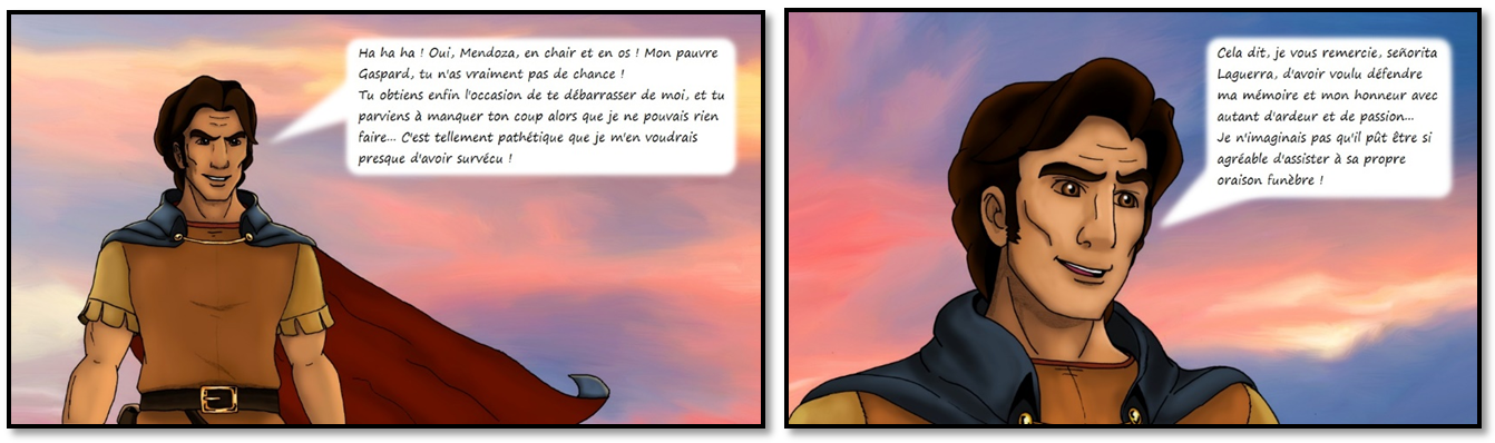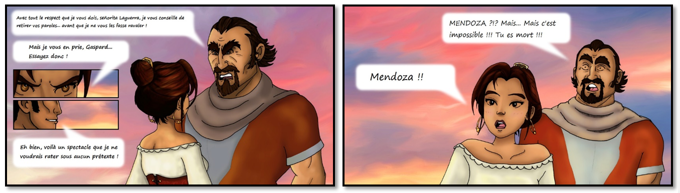 Cher Dek, merci infiniment pour ce message détaillé !DeK a écrit : 26 janv. 2017, 00:01 J'attendais de voir l'ensemble de ce projet avant de me prononcer et je dois dire que je suis bluffée. Les répliques sont justes et drôles, elles font mouche ; tu as très bien su retranscrire l'attitude et les expressions des personnages dans cette saynète. De plus tu as respecté le character design de BS qui, je trouve, n'est pas évident à redessiner, surtout celui de Mendoza, qu'il m'est impossible de faire convenablement et que certain(e)s ont tendance à idéaliser. So I take my hat off to you.