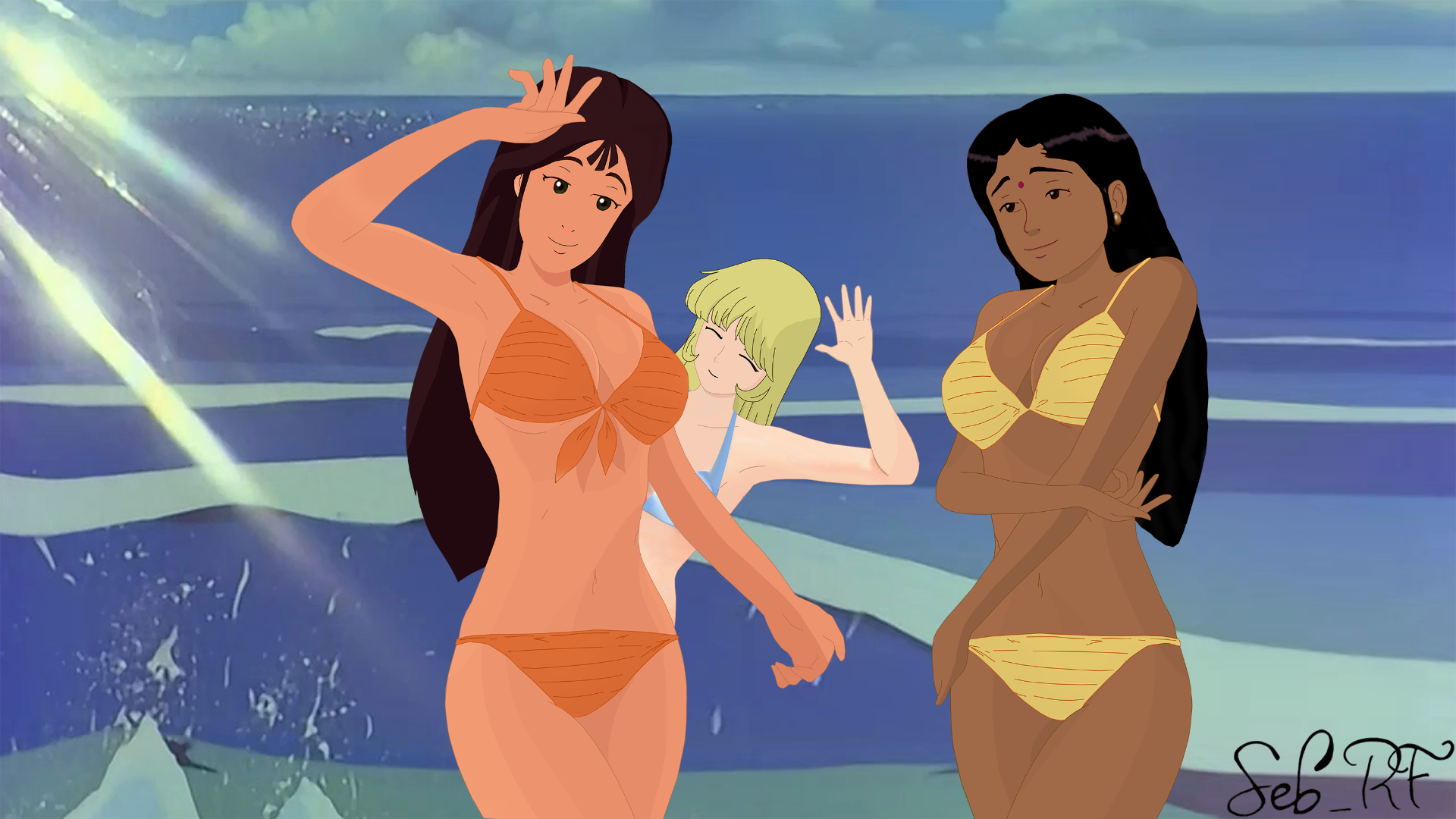 Je ne vais pas mentir: ça me fait un peu (comprenez: très) bizarre de voir Zia en mode plage (déjà que mon cerveau a du mal à imaginer nos trois enfants adultes...), mais sinon le montage est bien fait. :x-):