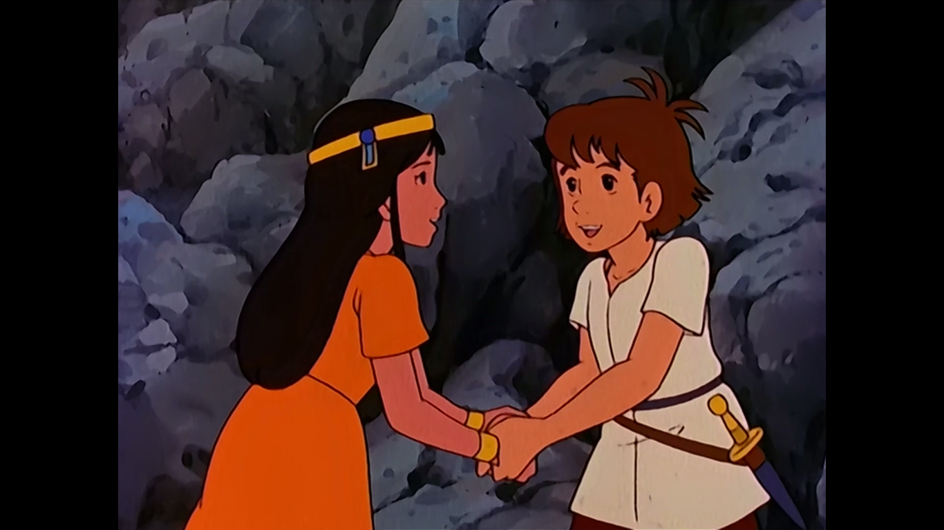 Durant toute la quête des cités d'or, il sera aux "petits soins" avec elle ... Et que je t'aide à monter une pente à 2 % par ci, et que je tienne la main par là (presque tout le temps en fait ) sans parler des innombrables réconfortations du genre "j'suis sur que tu retrouveras ton père et ce sera pour toujours j'en suis certains" (désolé Esteban mais tu ne vis pas dans un monde de bisounours), ........... Bref ça n'en fini plus !