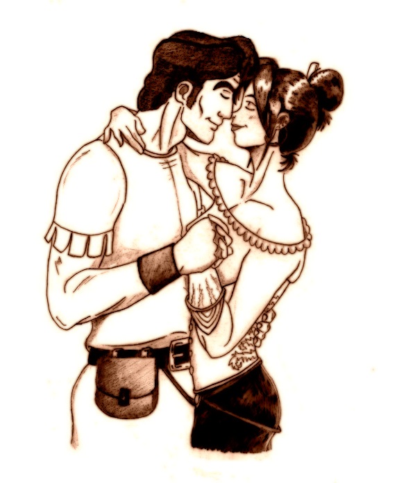 Je ne me débrouille pas trop mal en dessin, par-contre, et j'ai réalisé celui-là aujourd'hui (avoir une entorse, ça donne du temps à tuer ! x-) ) avec plusieurs crayons plus ou moins épais. Je ferai sans doute une version en couleurs plus tard dans la semaine. ;)