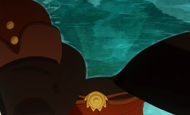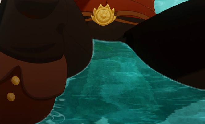 Suis-je la seule à trouver ce reflet, dans l'eau, légèrement ressemblant à un autre personnage (Laguerra père) ? Attendez, je le retourne, on verra mieux.