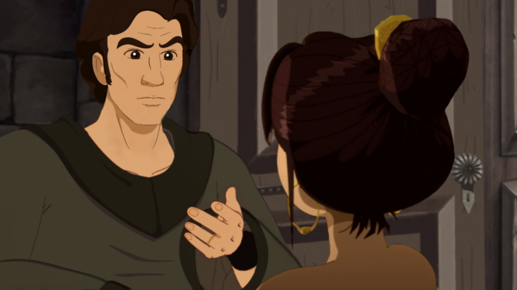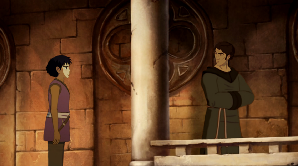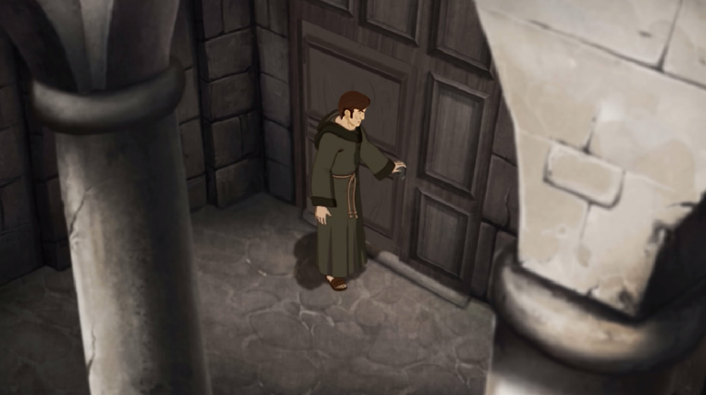 : Escortée par Estéban et Miguel de Rodas. Tu dois te souvenir de lui. C'est ton demi-frère. Le dom prieur nous a dit le peu qu'il savait de toi... sauf que tu leur as menti. Tu n'as jamais perdu la mémoire, n'est-ce pas?