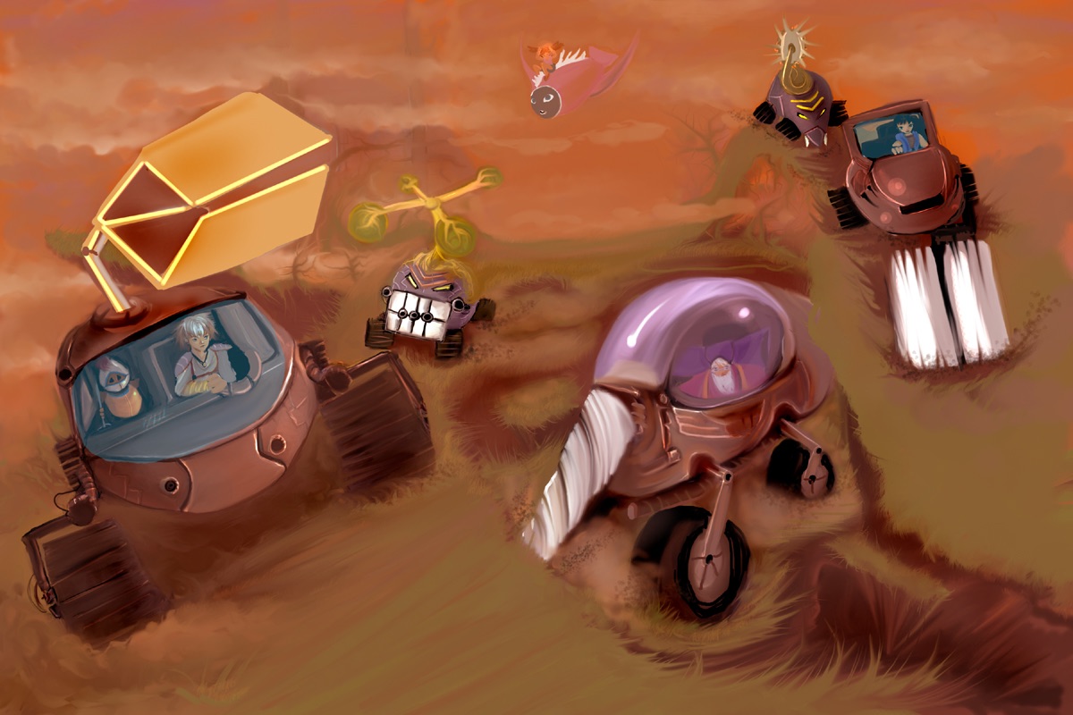 Pour ce lundi, je vous propose un fanart, trouvé sur deviantart.com la semaine dernière, ou l'auteur a représenté nos héros sous formes de poupées, pilotant leurs véhicules réduits à la taille de jouets. J'aime beaucoup les couleurs, et l'approche. Broke ressemble à un véritable poisson, tandis que son visage fait très humain. Et j'ai l'impression qu'Oon est un petit peu plus rondouillard que d'habitude, tandis qu'un Monstroplante est prêt à jouer aux hélicoptères...