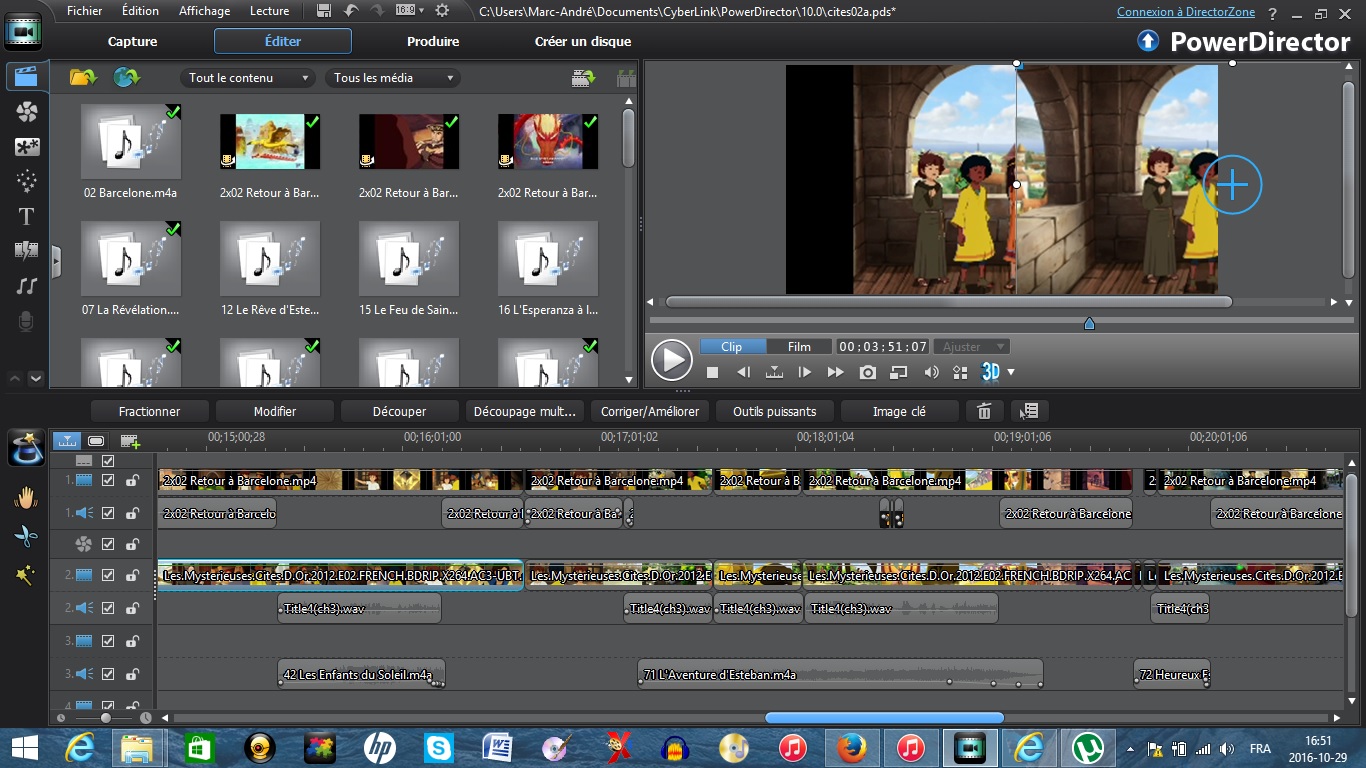 C'est vraiment très simple: je reprends le fichier du montage sauvegardé que j'ai fait de chaque épisode, et j'ajoute par dessus la version panoramique. Je déplace cote à cote l'ancienne et la nouvelle video pour voir deux images parfaitement synchro. Je détecte alors précisément où faire les coupures quand elles ne sont plus synchro. Voilà