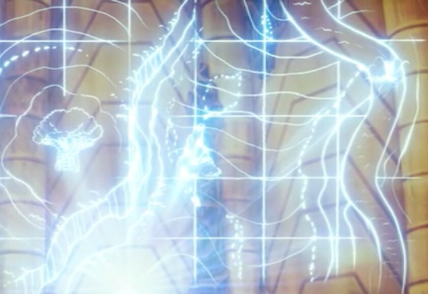Ils les mettent en place, et ça active les statues, qui dévoilent un hologramme qui leur montre la position exacte de la prochaine cité d’or indiqué par un arbre géant. Ah est au passage paye ta carte, car pour les Naacals ils n’étaient pas censé être aller à Chambord pour voir les indices laisser par quelqu’un qui n’était pas censé avoir certaine informations… donc ils étaient pas censé savoir que le symbole de la cité était un arbre… C’été pourtant si simple d’éviter ce genre d’incohérence… symbole de soleil comme à Kumlar point final.