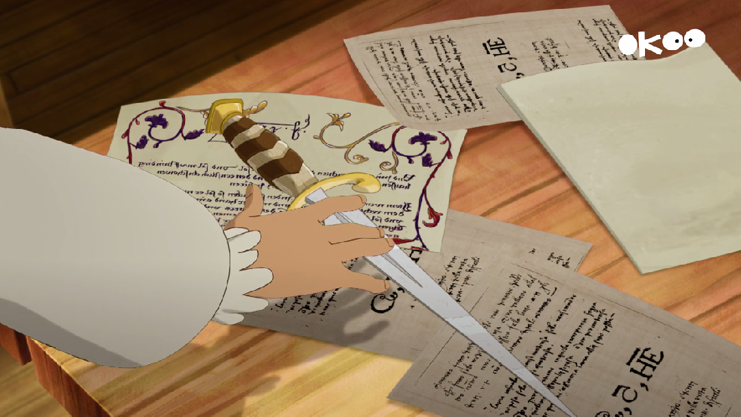 Les papiers éparpillés par Laguerra et l'acte de création de l'Ordre du Sablier dans l'épisode "le fondateur": à l'envers.