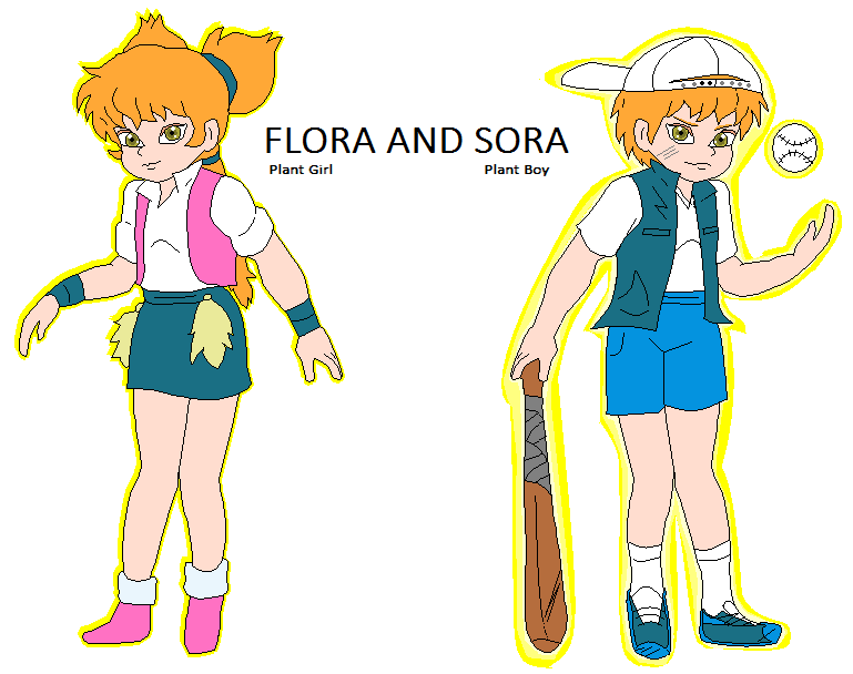 Pour aujourd'hui, je vous poste un fanart de Flora de JayceBrasil, où elle apparaît avec Sora, un garçon végétal né de son imagination. Attention à la batte de baseball, il m'a l'air dangereux, avec ça!